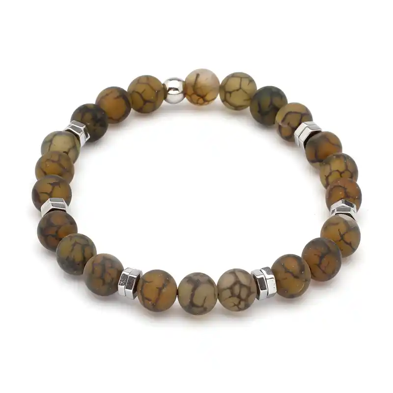 Πέτρες από Brown Fire Agate & 6γωνους δίσκους από ατσάλι