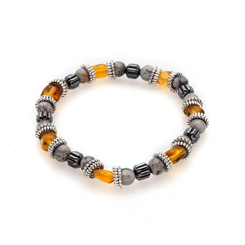 Πέτρες από Grey Picasso, Amber, Αιματίτης & δίσκοι από ανοξείδωτο Ατσάλι