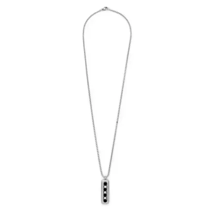 Κολιέ με ορθογώνιο σχήμα και ορυκτές πέτρες από μαύρο Onyx σε πλαίσιο από ασημί ατσάλι