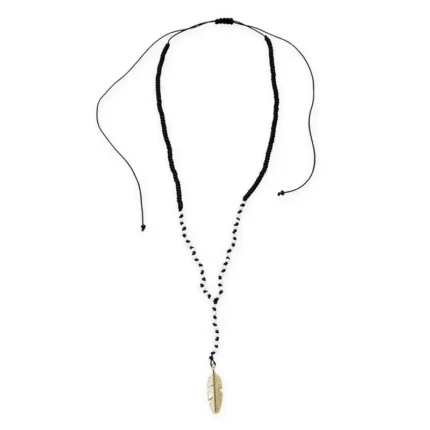 Μακραμε ροζάριο με επιχρυσωμένο διακοσμητικό πούπουλο από ανοξείδωτο ατσάλι