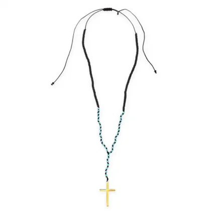 Μακραμε ροζάριο με σταυρό από επιχρυσωμένο ανοξείδωτο ατσάλι και Turquoise ορυκτές πέτρες