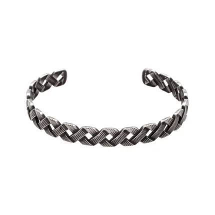 Χειροπέδα χωρίς κούμπωμα με χαραγμένο σχέδιο σε ασημί ανοξείδωτο ατσάλι