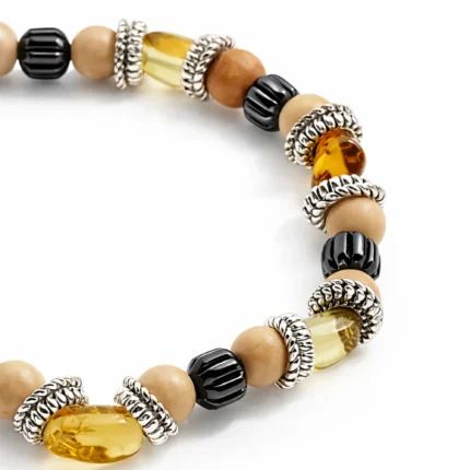 Πέτρες από Cream river Jasper, Amber, Αιματίτη & δίσκοι από ανοξείδωτο Ατσάλι