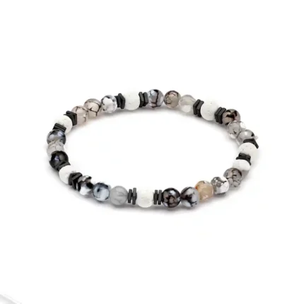 Πέτρες από Black Frosted agate με λευκή ηφαιστειακή λάβα & Αιματίτη