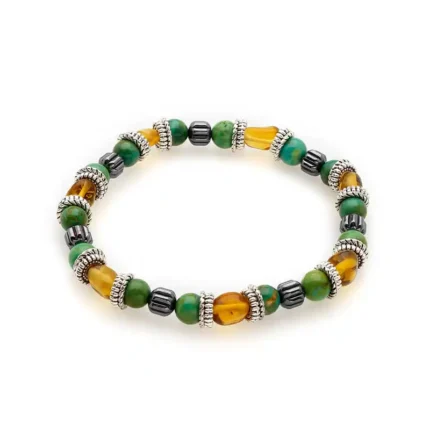 Πέτρες από Green Turquoise, Amber, Αιματίτης & δίσκοι από ανοξείδωτο Ατσάλι