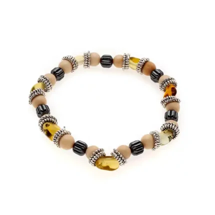 Πέτρες από Cream river Jasper, Amber, Αιματίτης & δίσκοι από ανοξείδωτο Ατσάλι