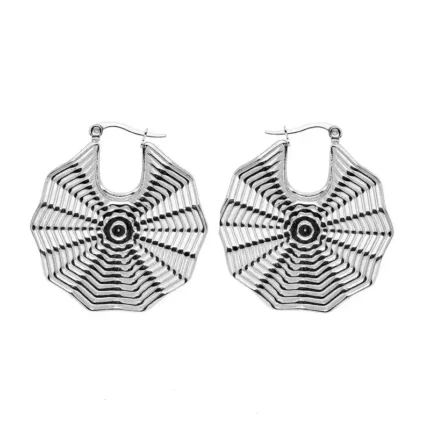 Σκουλαρίκια με ανάγλυφο σχήμα βεντάλιας από ασημί ατσάλι