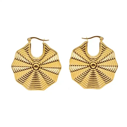 Σκουλαρίκια με ανάγλυφο σχήμα βεντάλιας από επιχρυσωμένο ατσάλι