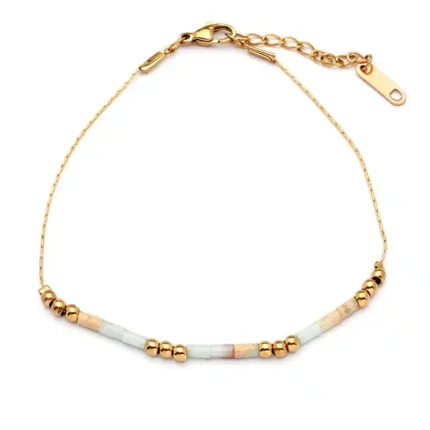 Βραχιόλι από επιχρυσωμένο ατσάλι και ορυκτές πέτρες amazonite
