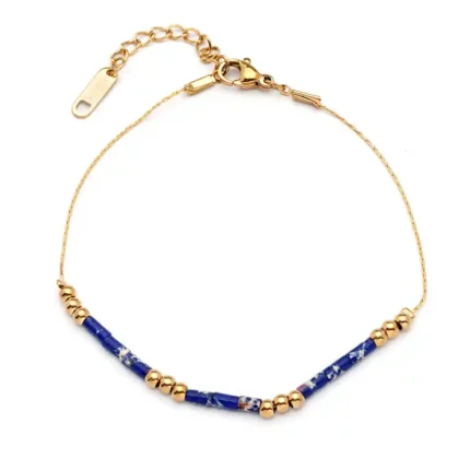 Βραχιόλι από επιχρυσωμένο ατσάλι και ορυκτές πέτρες lapis lazuli