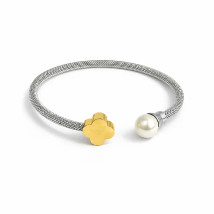 Βραχιόλι τύπου ταυτότητα με πέρλα και διακοσμητικό IRIS – SILVER μαίανδρος