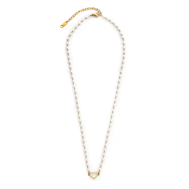 Κολιέ επιχρυσωμένη αλυσίδα με λευκές πέρλες και διακοσμητική επιχρυσωμένη καρδιά
