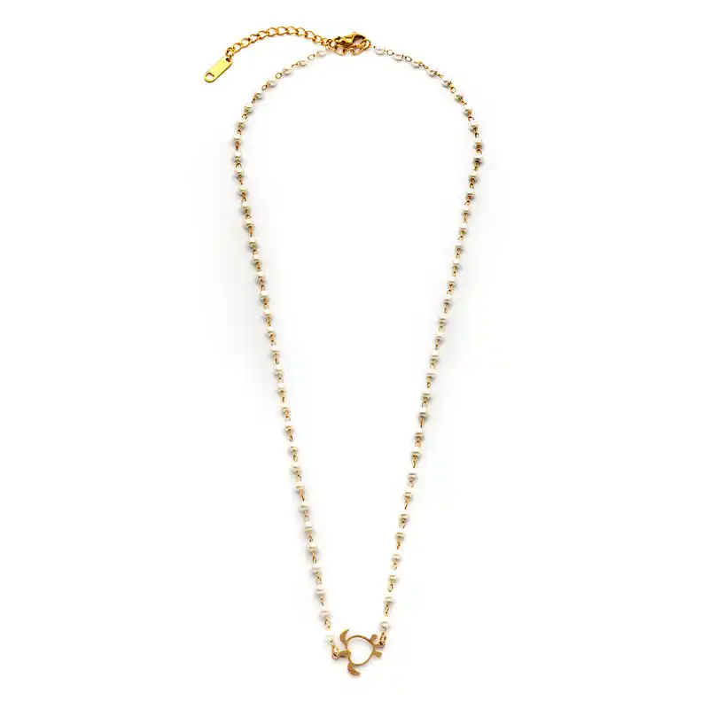 Κολιέ επιχρυσωμένη αλυσίδα με λευκές πέρλες και διακοσμητικό επιχρυσωμένο χελωνάκι