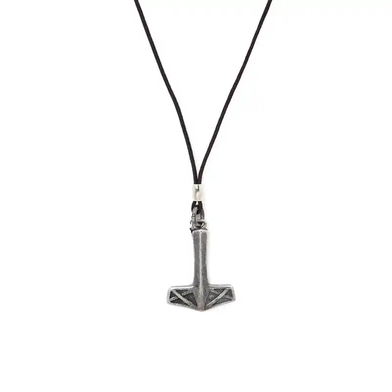 Κολιέ από μαύρο σχοινί με διακοσμητικό κέλτικο σφυρί από ασήμι 925