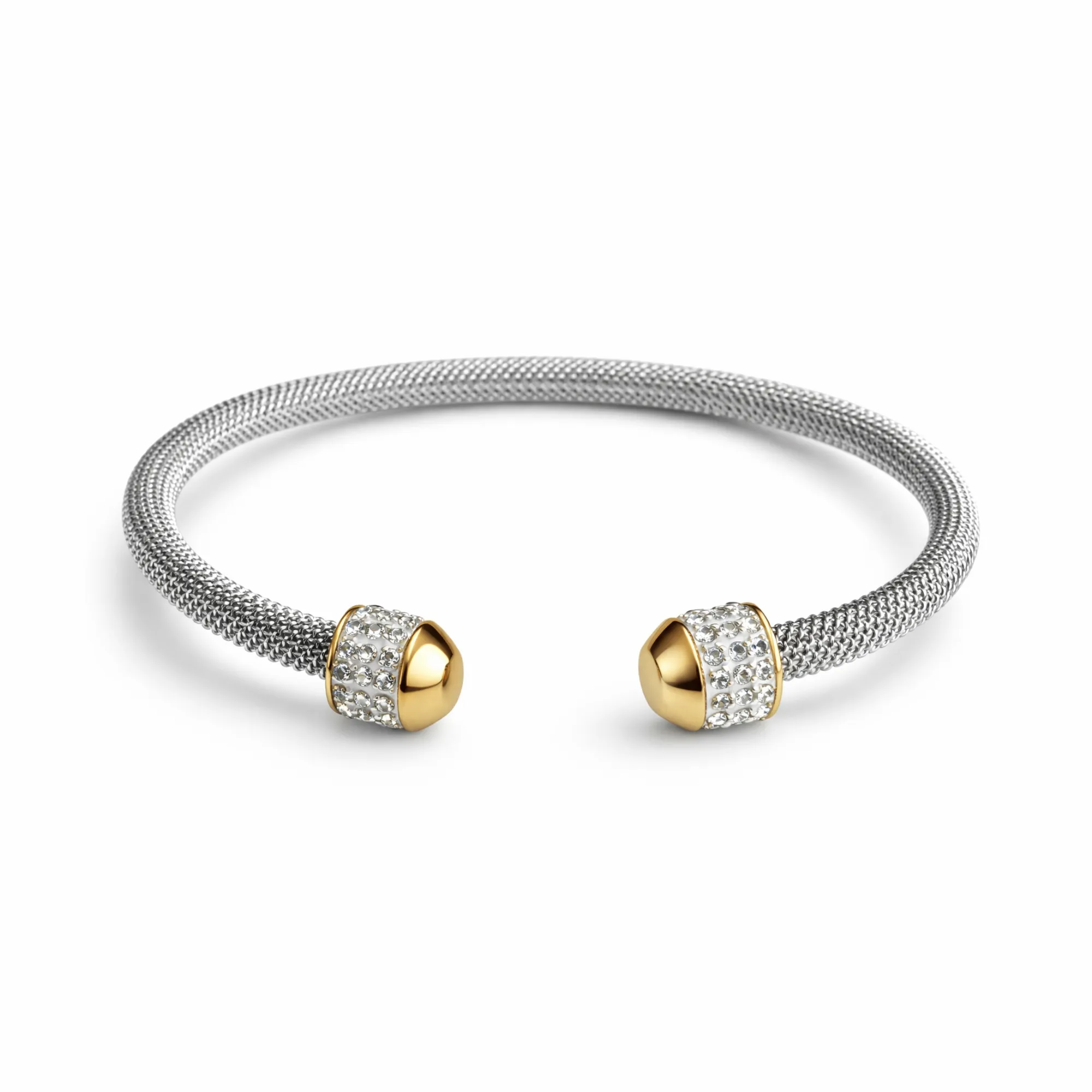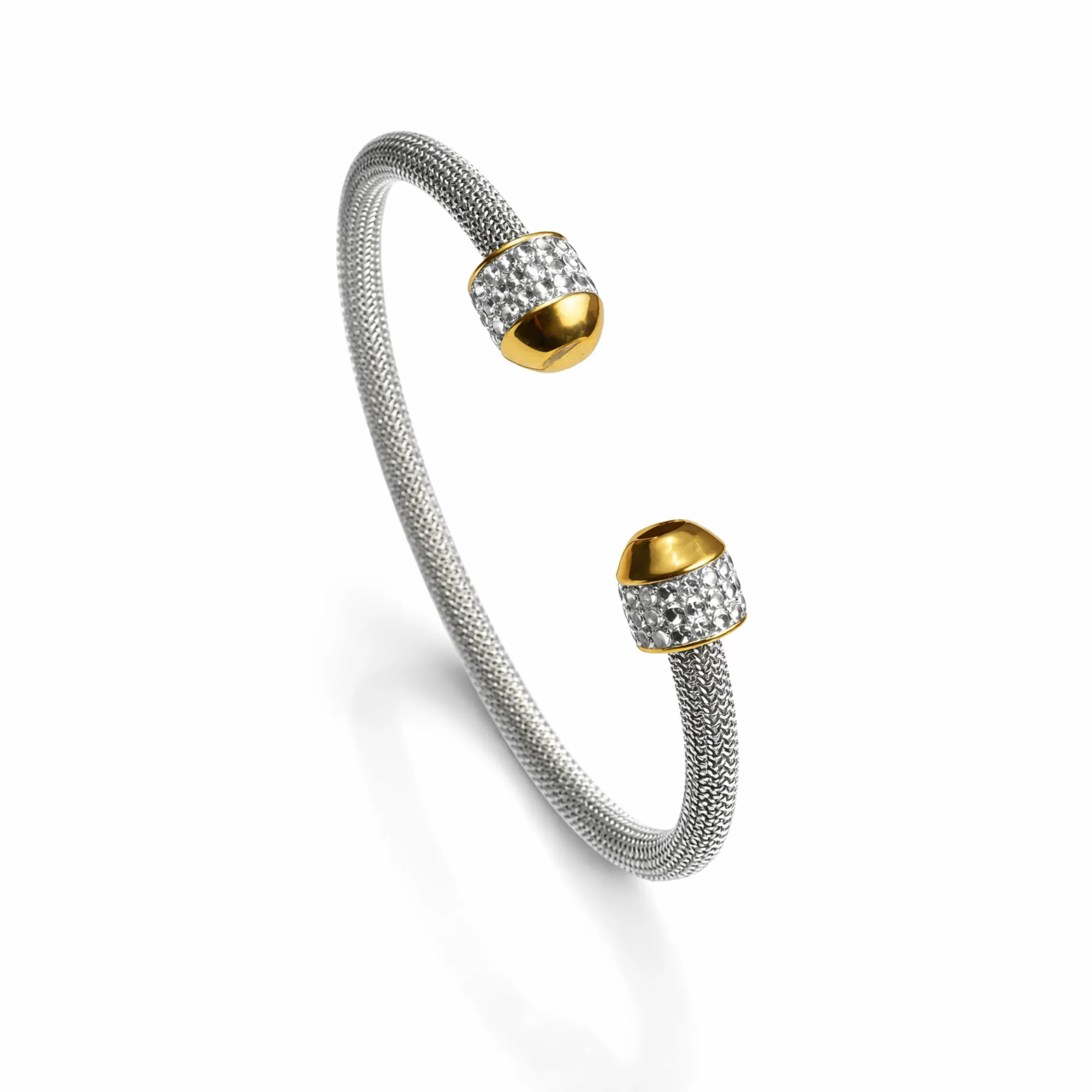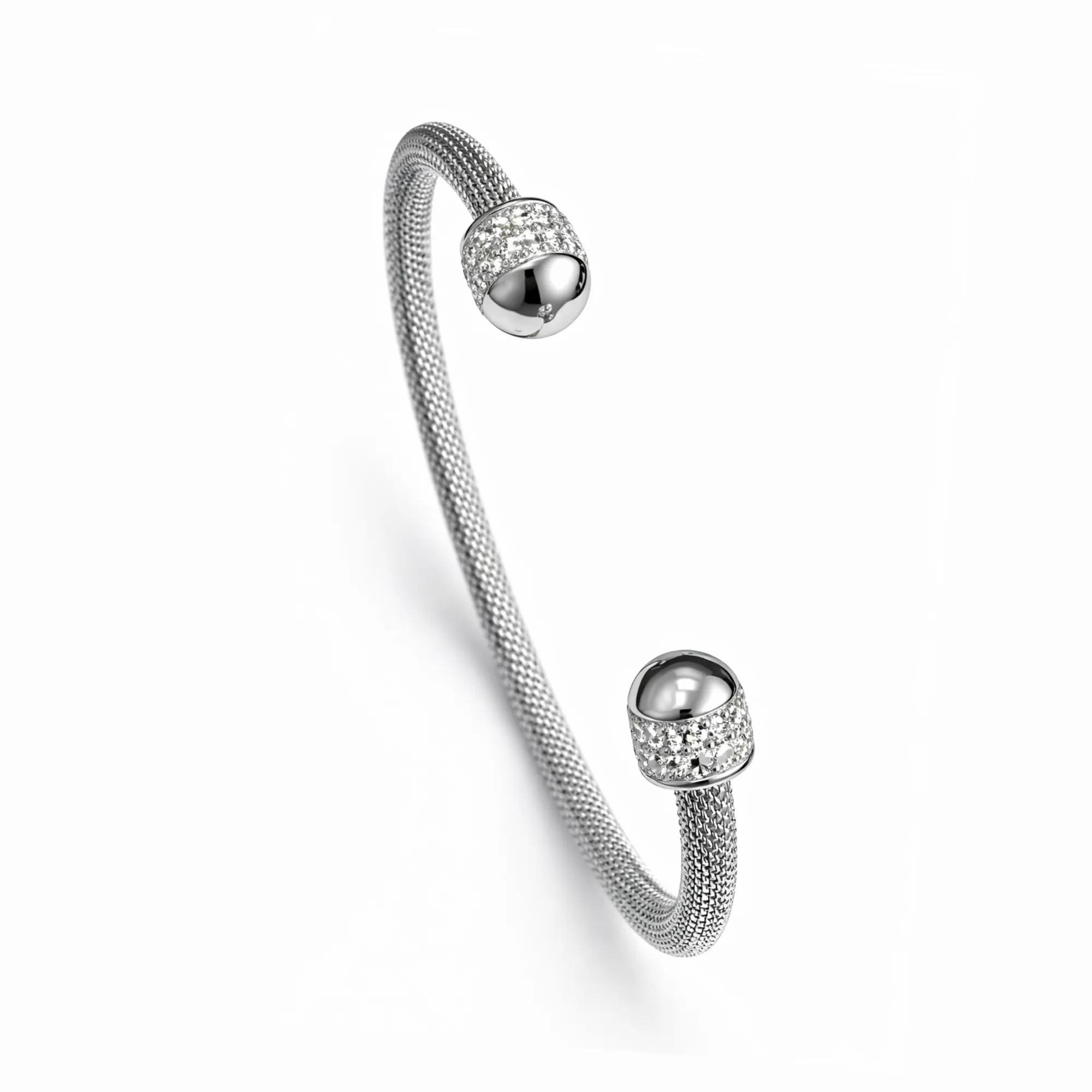 Ασημί Χειροπέδα “Mesh Gold Orb” με Πλέγμα & Pavé Ζιργκόν