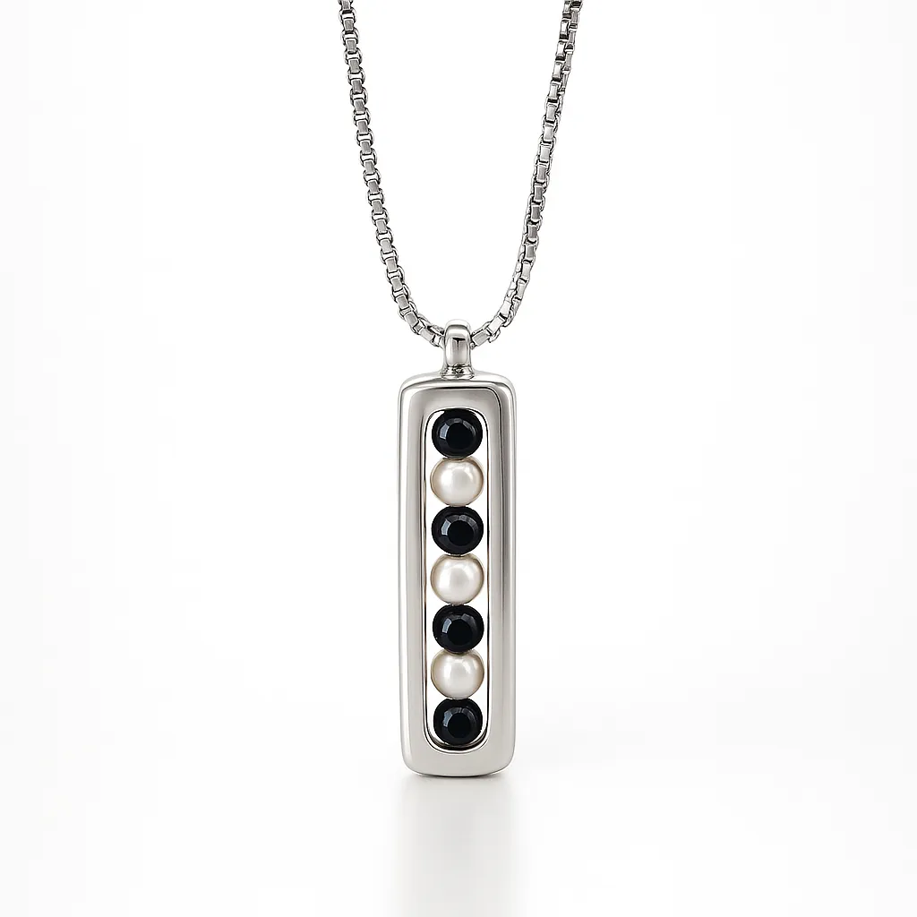 Κολιέ με ορθογώνιο σχήμα και ορυκτές πέτρες από μαύρο Onyx σε πλαίσιο από ασημί ατσάλι