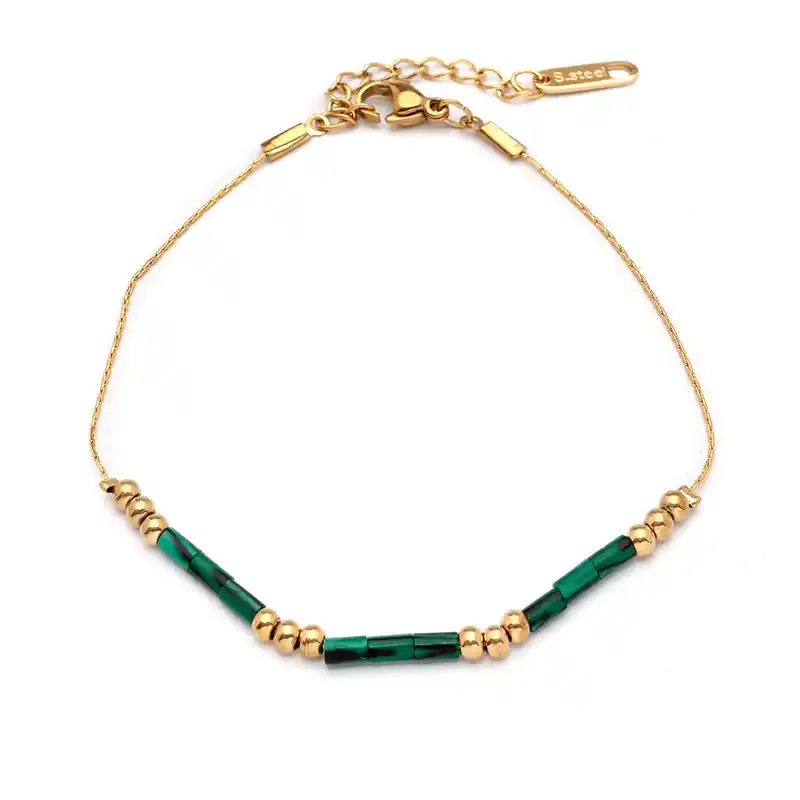 Βραχιόλι από επιχρυσωμένο ατσάλι και πέτρα με μαλαχίτη