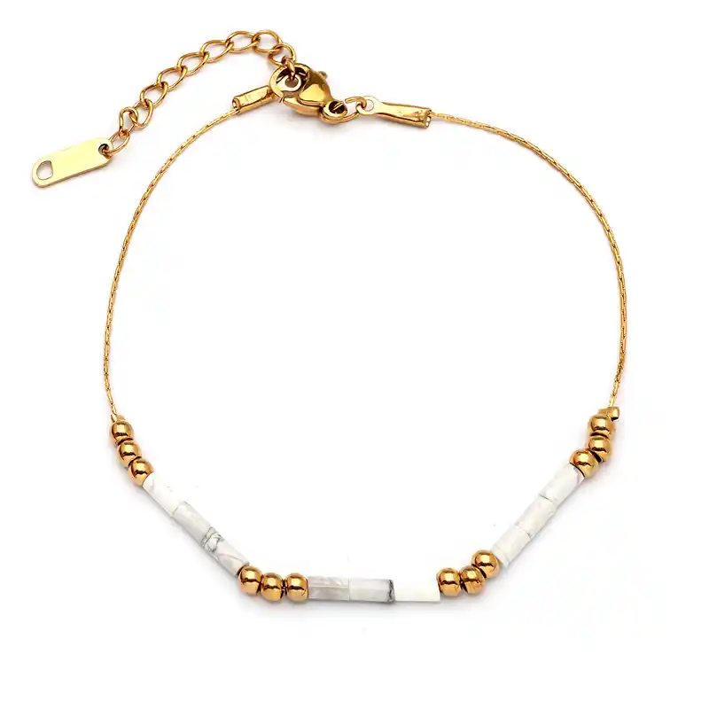 Απο επιχρυσωμενο ατσαλι 304 και πετρα white howlite
