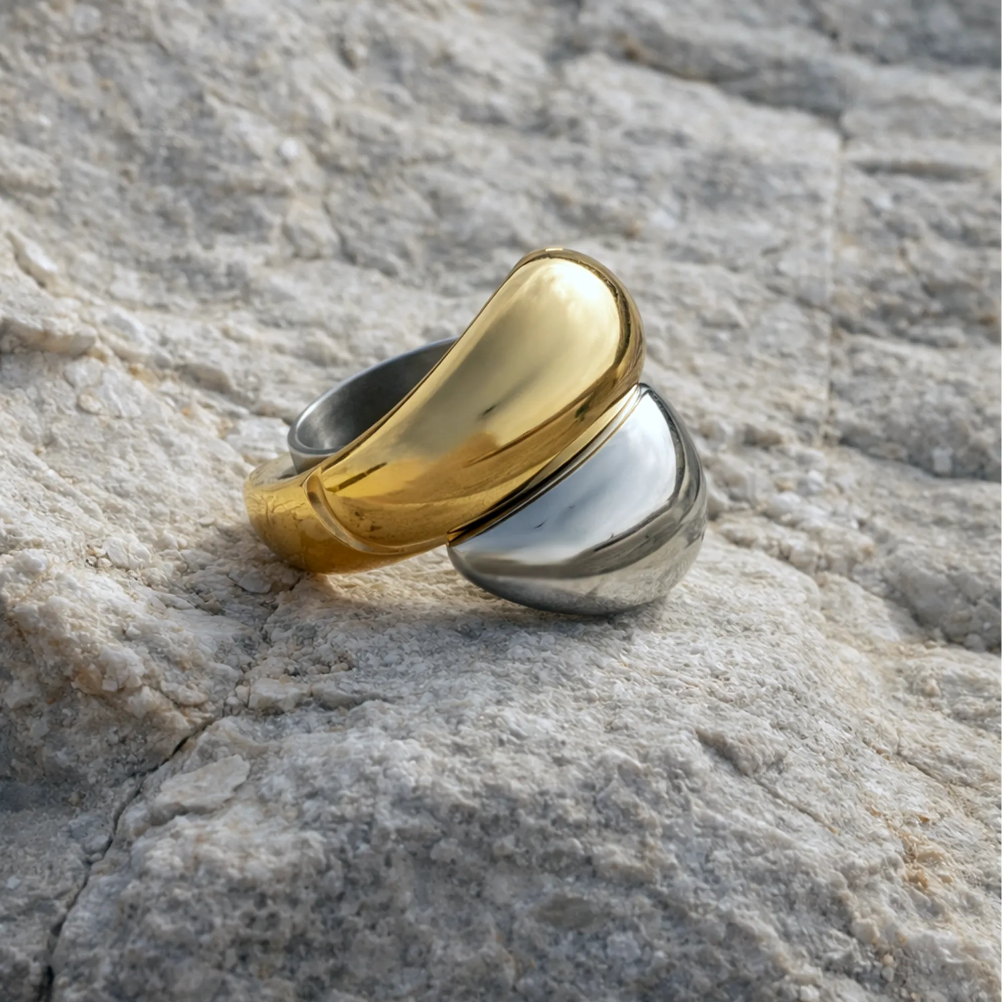 Γυναικείο δαχτυλίδι σε χρυσό-ασημί χρώμα και orb σχήμα