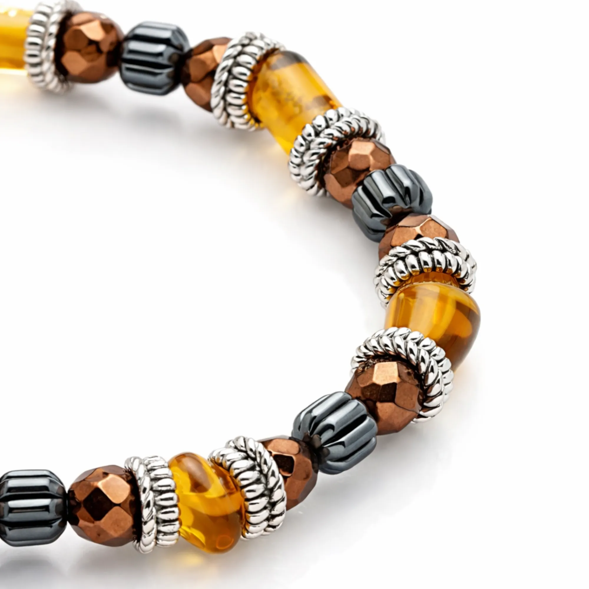 Πέτρες από Amber, Bronze Αιματίτη & δίσκοι από ανοξείδωτο Ατσάλι