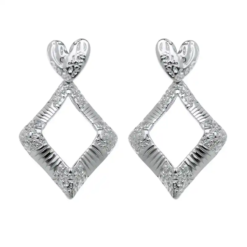 Σκουλαρίκια από ασημί σφυρήλατο ατσάλι σε σχήμα ρόμβου