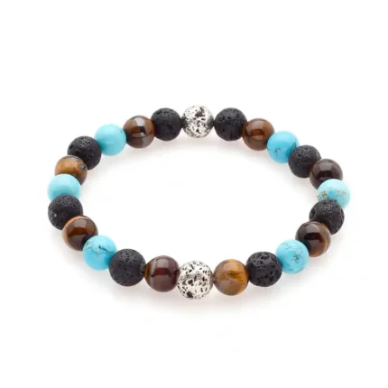 Πέτρες από Brown Tiger Eye, Turquoise, Μαύρη ηφαιστειακή λάβα & Ασημί χάντρες