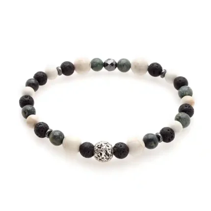 Πέτρες από Seraphinite, White Turquoise, Μαύρη ηφαιστειακή λάβα & Ασημί χάντρα
