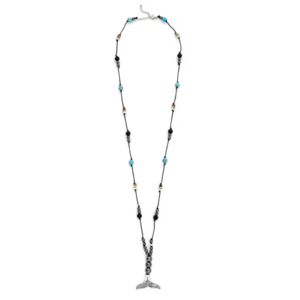 Κολιέ σε σχοινί από ορυκτές πέτρες και σχέδιο ουρά φάλαινας από ασημί ανοξείδωτο ατσάλι