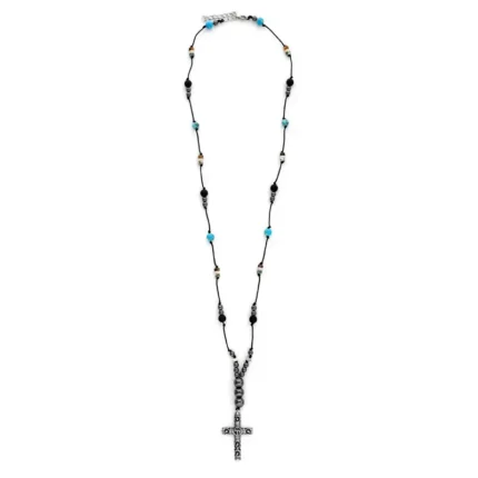 Κολιέ σε σχοινί από ορυκτές πέτρες και σταυρό από ασημί ανοξείδωτο ατσάλι