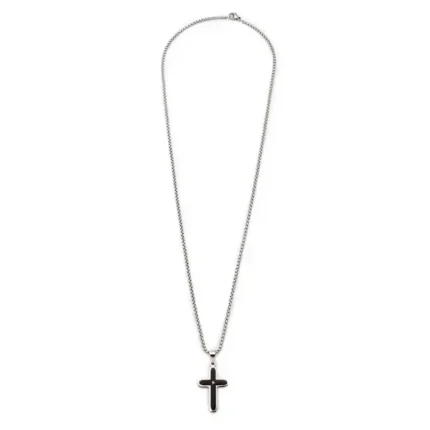 Σταυρός από Ασημί & Μαύρο Ατσάλι σε 2 Layers με διακοσμητικό μοτίβο