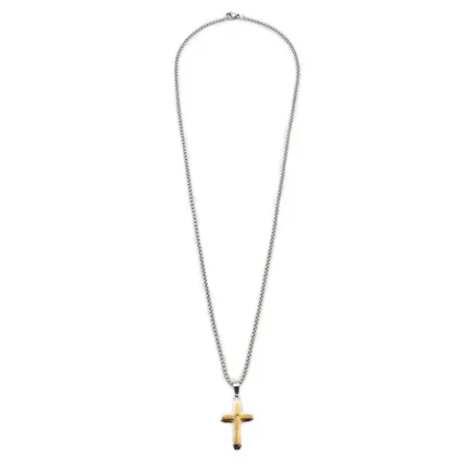 Σταυρός από Επιχρυσωμένο & Ασημί Ατσάλι σε 2 Layers με διακοσμητικό μοτίβο