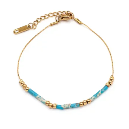 Βραχιόλι από επιχρυσωμένο ατσάλι και πέτρα με imperial jasper τουρκουάζ